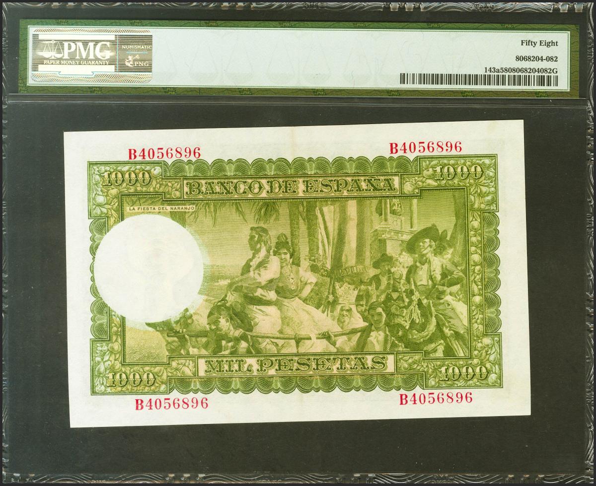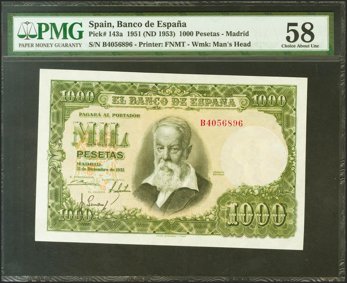 1000 Pesetas. 31 de Diciembre de 1951. Serie B. (Edifil 2021: 463a, Pick: 143a). EBC++. Encapsulado PMG58.