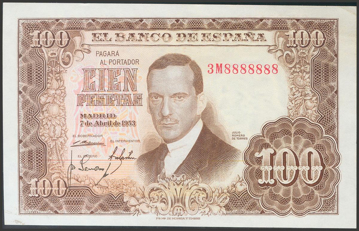 1000 Pesetas. 7 de Abril de 1953. Serie 3M y con numeración con el mismo dígito y capicúa (número sólido). (Edifil 2017: 464c). SC-.
