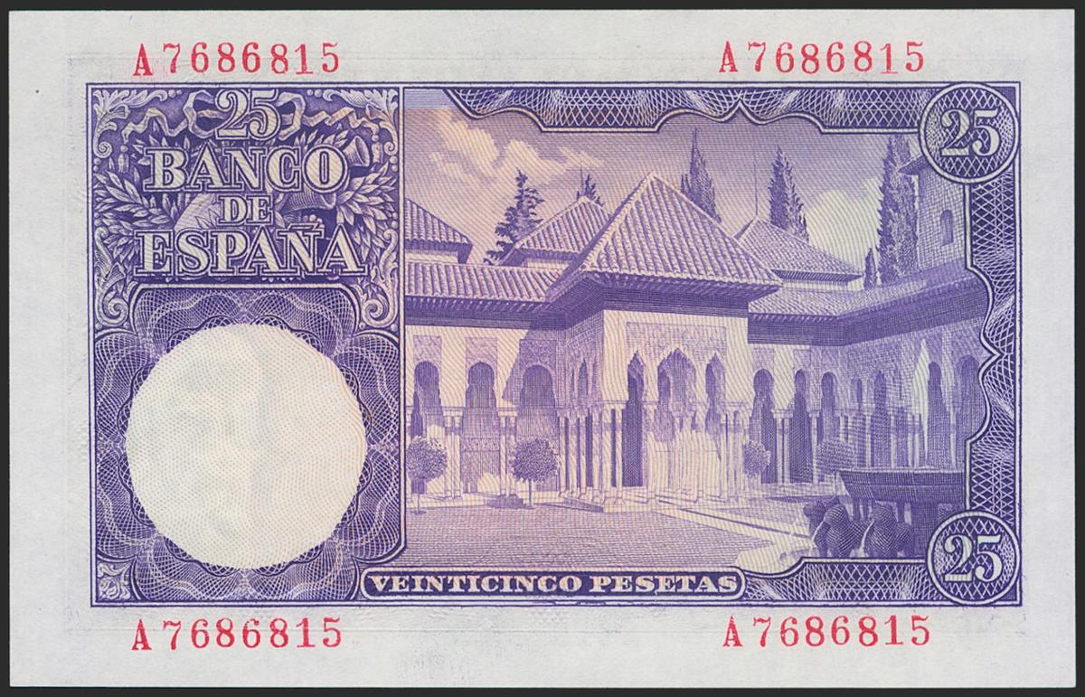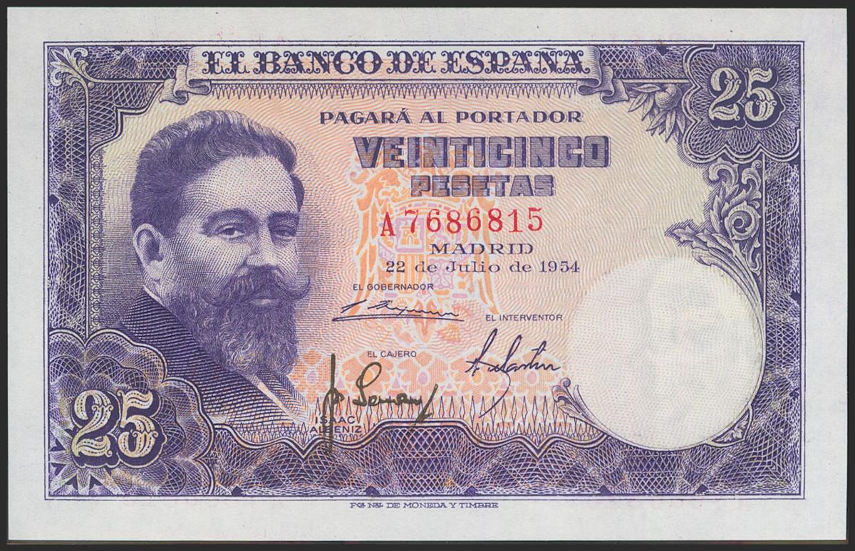 25 Pesetas. 22 de Julio de 1954. Serie A. (Edifil 2021: 467a). Apresto original. SC-.