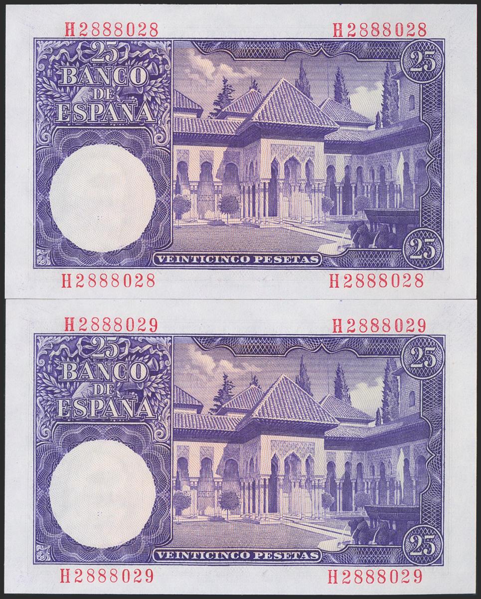 25 Pesetas. 22 de Julio de 1954. Pareja correlativa. Serie H. (Edifil 2021: 467a). Apresto original. SC.