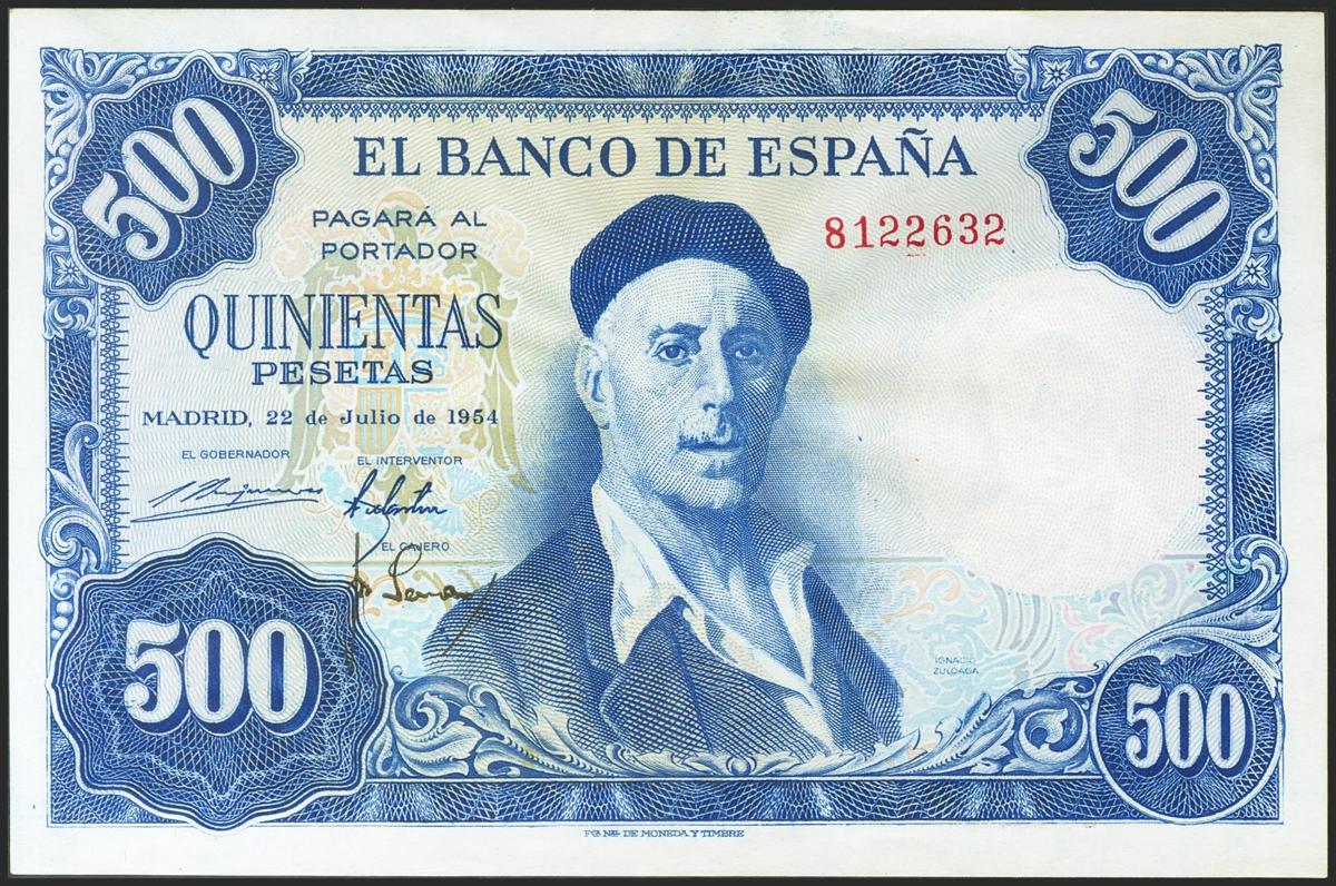 500 Pesetas. 22 de Julio de 1954. Sin serie. (Edifil 2021: 468, Pick: 148a). Raro en esta calidad, conserva todo su apresto original. SC--.