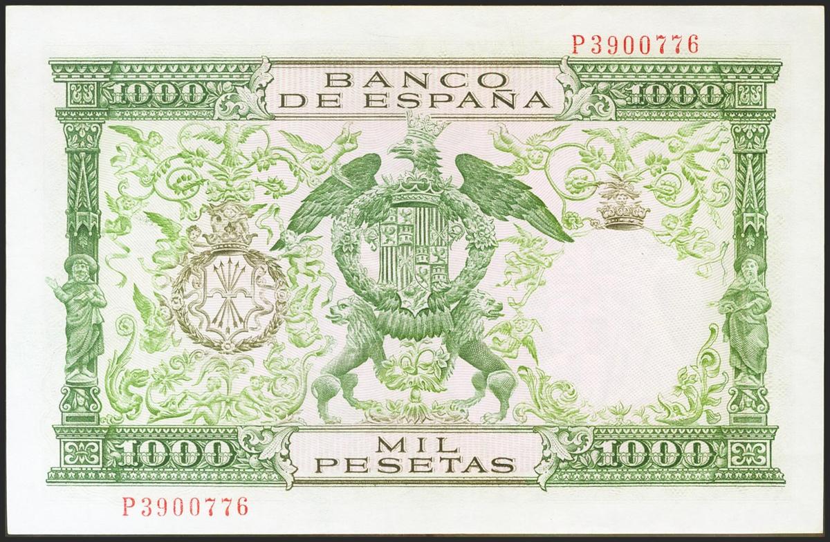 1000 Pesetas. 29 de Noviembre de 1957. Serie P. (Edifil 2021: 469b). Conserva gran parte del apresto original. EBC+.