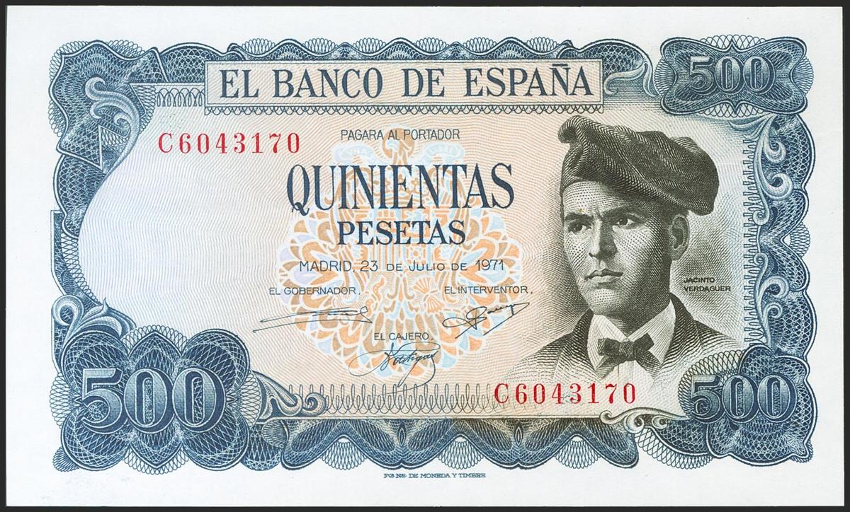 500 Pesetas. 23 de Julio de 1971. Serie C. (Edifil 2021: 473a). Apresto original. SC-.