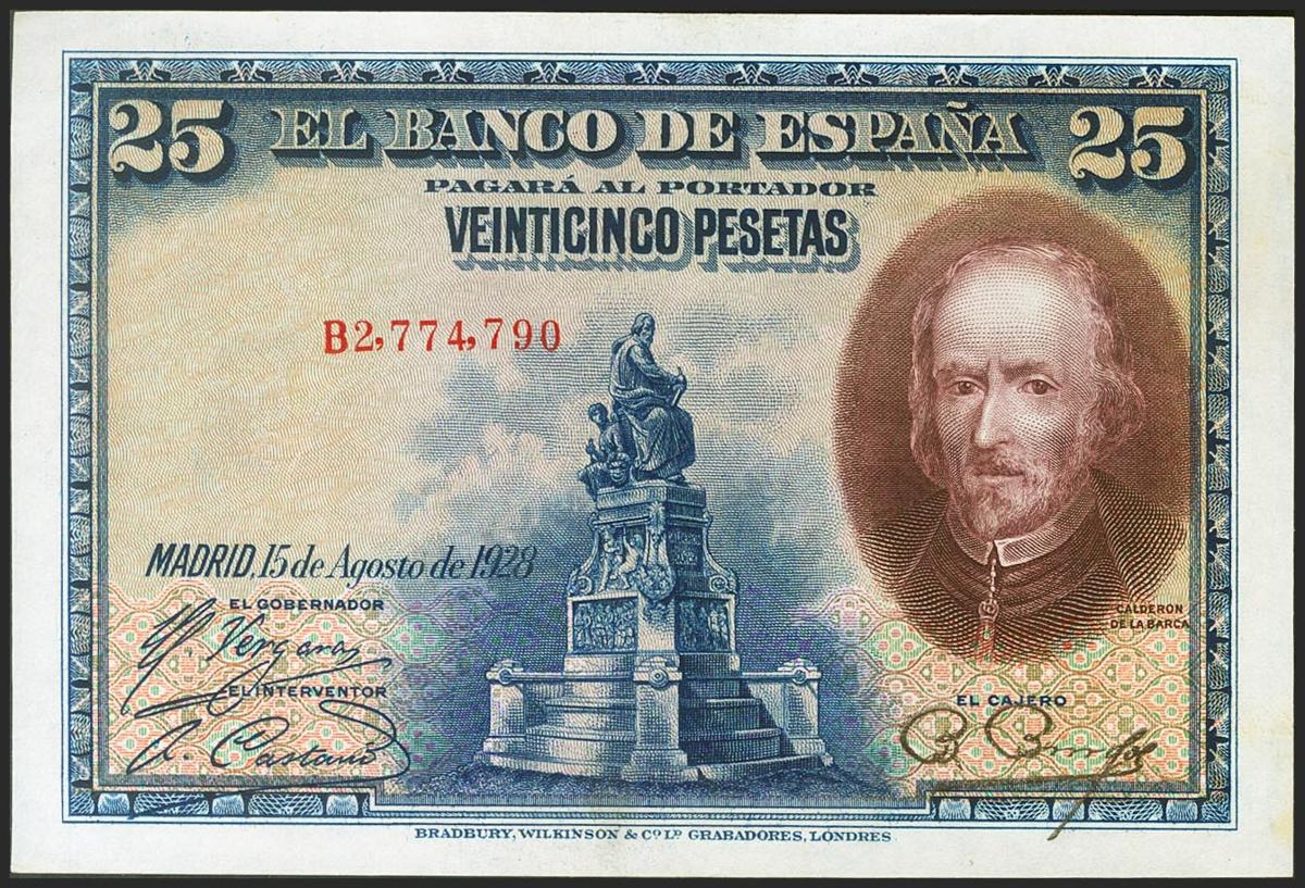 25 Pesetas. 15 de Agosto de 1928. Serie B. (Edifil 2021: 353). Apresto original. SC.