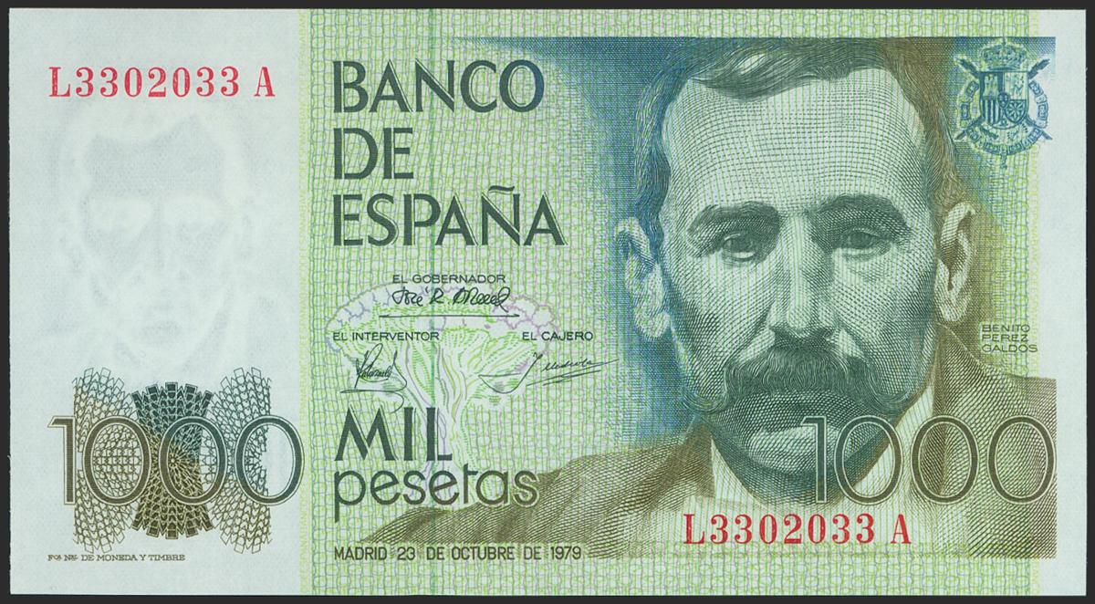 1000 Pesetas. 23 de Octubre de 1979. Serie L-A y numeración capicúa. (Edifil 2021: 477a). SC.