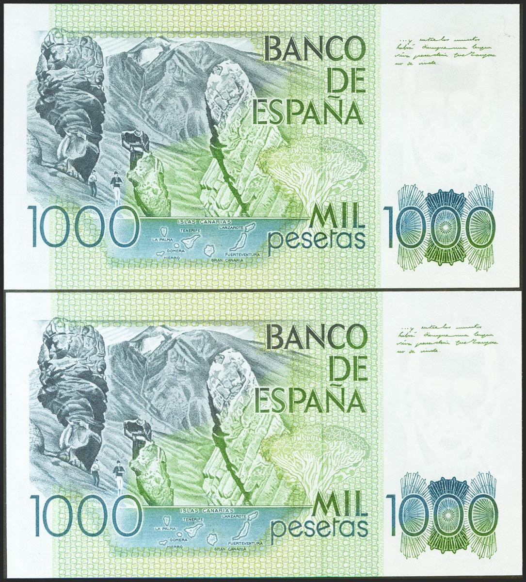 1000 Pesetas. 23 de Octubre de 1979. Pareja correlativa. Serie 2I. (Edifil 2021: 477a). SC.