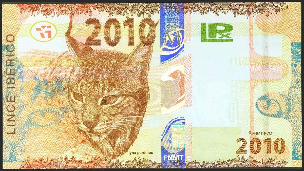 Prueba de billete del la F.N.M.T. emitida en el año 2010. No catalogado y raro. SC.