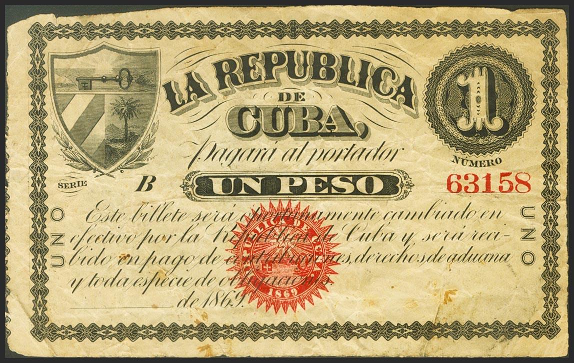 REPUBLICA DE CUBA. 1 Pesos. 1869 (sin fecha). Serie B. (Edifil 2021: 31). MBC.