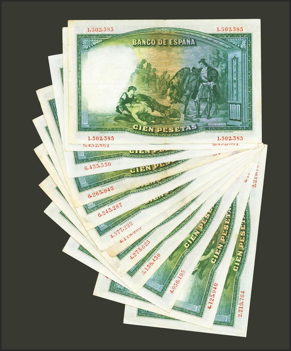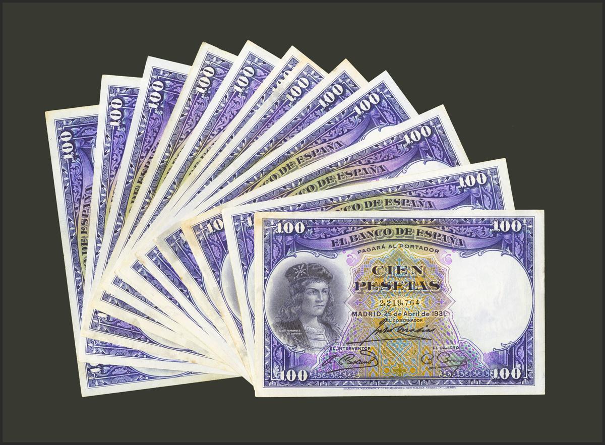 Conjunto de 12 billetes de 100 Pesetas emitidos el 25 de Abril de 1931, sin serie. (Edifil 2021: 360). EBC/MBC-. A EXAMINAR.