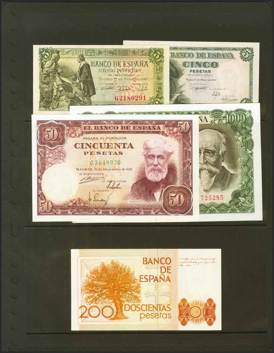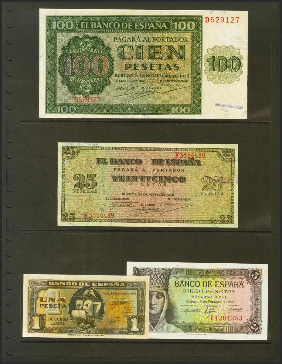 Precioso conjunto de 9 billetes del Banco España, de diferentes emisiones y en diversas calidades. A EXAMINAR