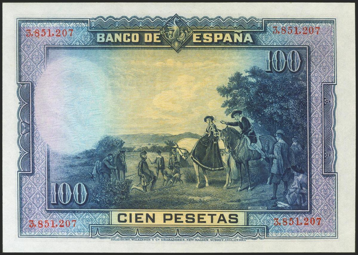 100 Pesetas. 15 de Agosto de 1928. Sin serie. (Edifil 2021: 355, Pick: 76a). Inusual en esta superlativa calidad, conserva todo su apresto original. SC.