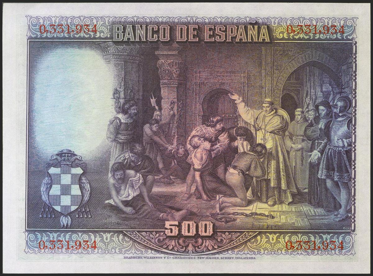 500 Pesetas. 15 de Agosto de 1928. Sin serie. (Edifil 2021: 356, Pick: 77a). Raro en esta superlativa calidad, apresto original. SC.