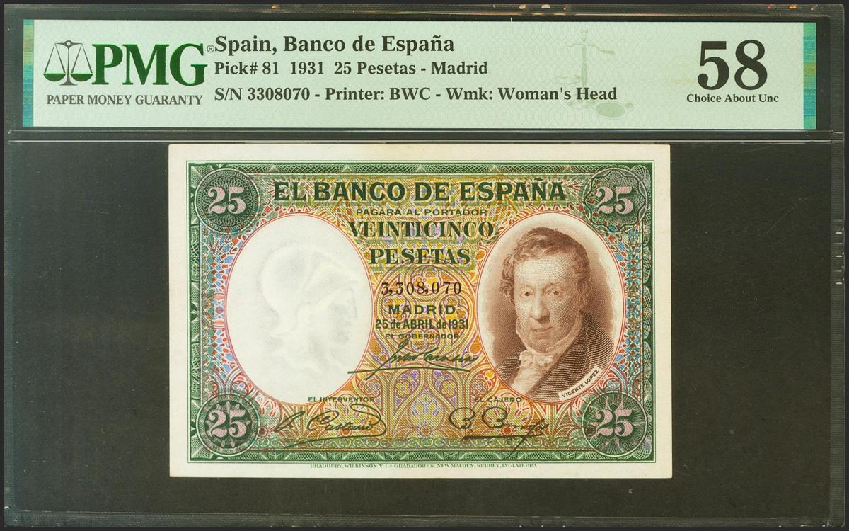 25 Pesetas. 25 de Abril de 1931. Sin serie. (Edifil 2021: 358, Pick: 81). EBC++. Encapsulado PMG58.