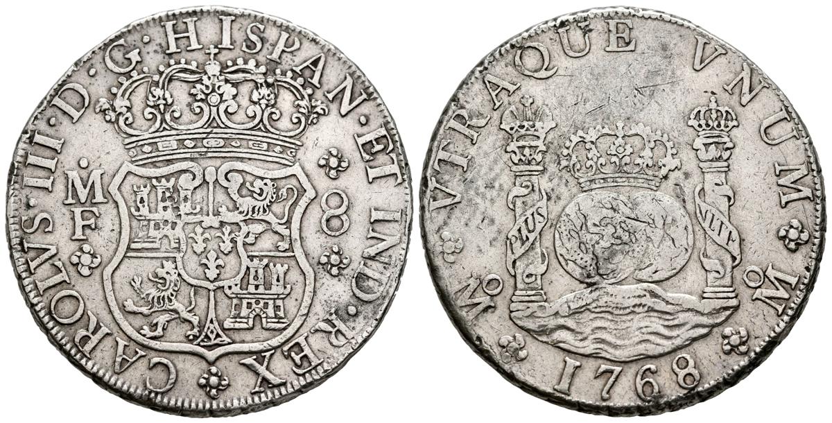 CARLOS III (1759-1788). 8 Reales. (Ar. 26,79g/38mm). 1768. México MF. (Cal-2019-1103). MBC+. Marquitas y rayitas.