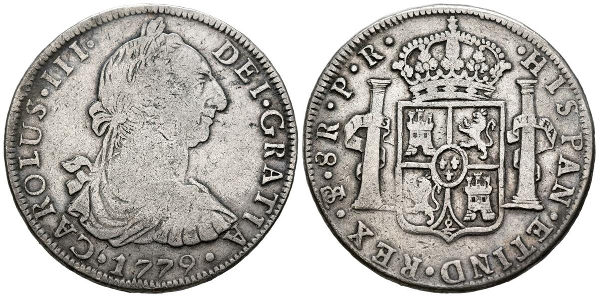 CARLOS III (1759-1788). 8 Reales. (Ar. 26,67g/40mm). 1779. Potosí PR. (Cal-2019-1176). MBC-.