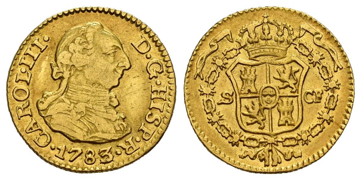 CARLOS III (1759-1788). 1/2 Escudo (Au. 1,75g/15mm). 1783/2. Sevilla CF (Cal-2019-1313). MBC. Escasa.