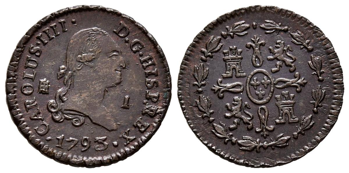 CARLOS IV (1788-1808). 1 Maravedí. (Ae. 1,13g/15mm). 1793 Segovia. (Cal-2019-21). EBC+. Rara así.