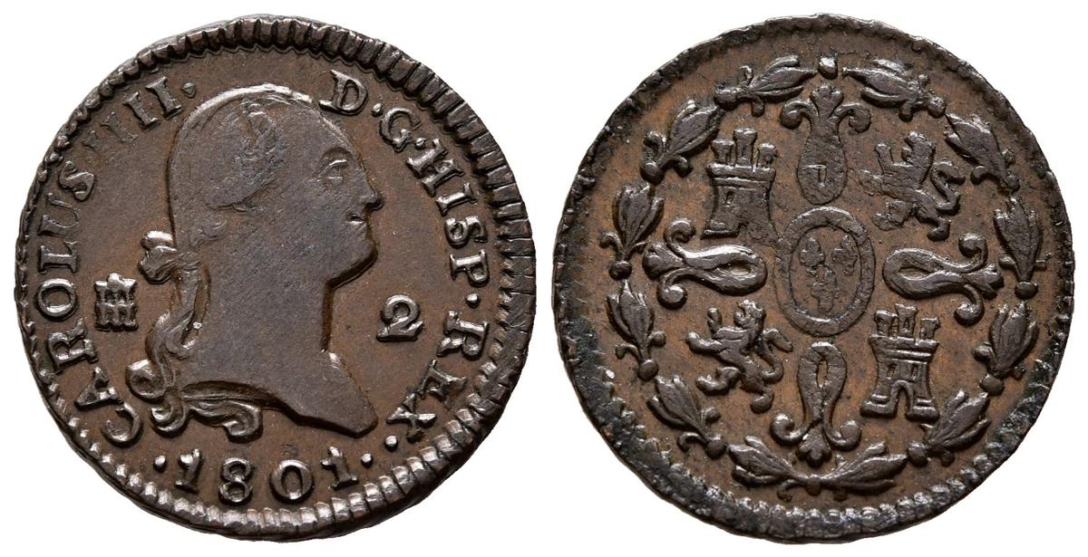 CARLOS IV (1788-1808). 2 Maravedís. (Ae. 2,45g/19mm). 1801 Segovia. (Cal-2019-35). EBC-.