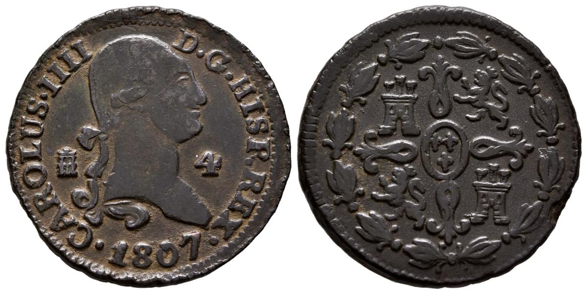 CARLOS IV (1788-1808). 4 Maravedís (Ae. 5,68g/26mm). 1807. Segovia. (Cal-2019-61). MBC+.