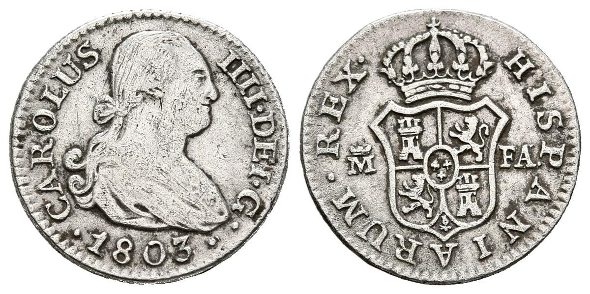CARLOS IV (1788-1808). 1/2 Real. (Ar. 1,41g/15mm). 1803. Madrid FA. (Cal-2019-265). MBC-.