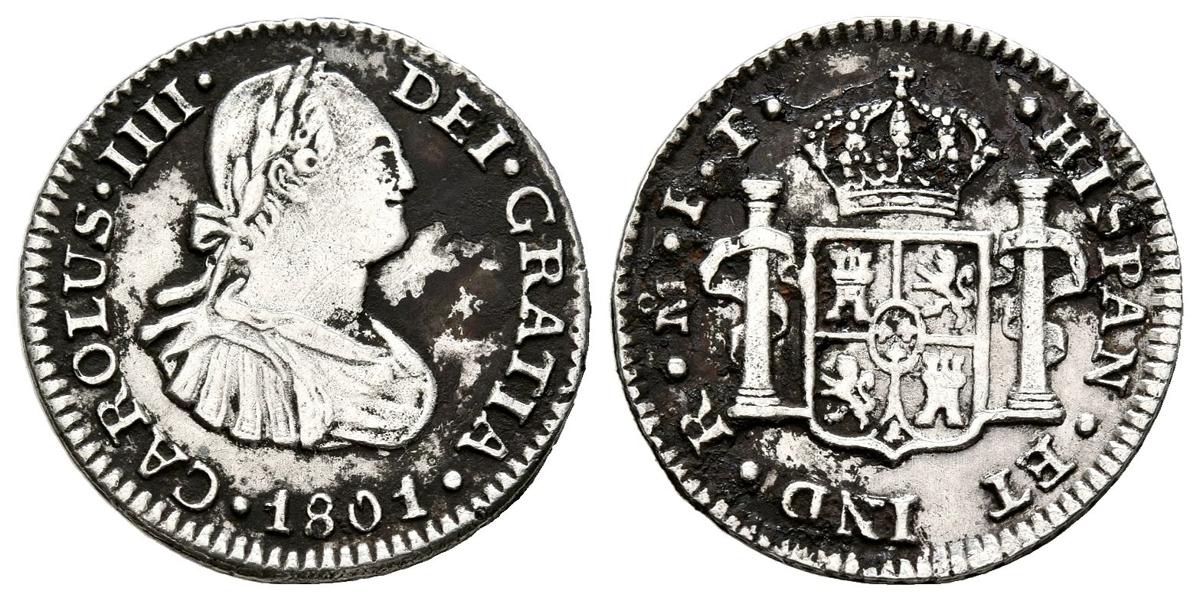 CARLOS IV (1788-1808). 1/2 Real (Ar. 1,69g/16mm). 1801. México FT. (Cal-2019-287). EBC. Oxidaciones. Bonita pátina.