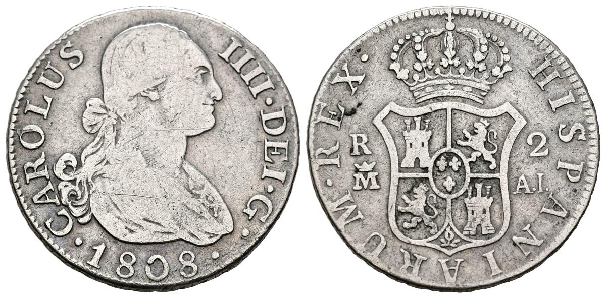 CARLOS IV (1788-1808). 2 Reales. (Ar. 5,75g/26mm). 1808. Madrid AI. (Cal-2019-619). MBC-.