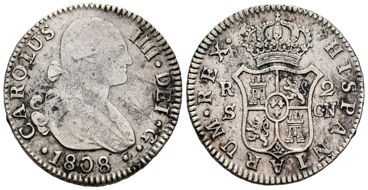 CARLOS IV (1788-1808). 2 Reales. (Ar. 5,74g/26mm). 1808. Sevilla CN. (Cal-2019-728). BC+/MBC.