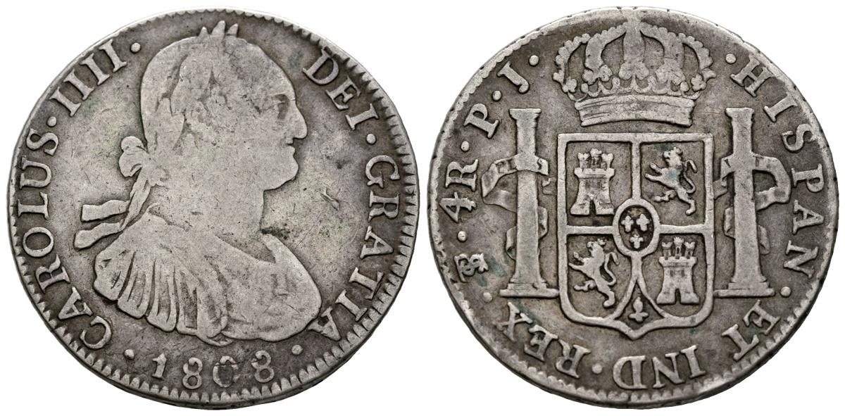 CARLOS IV (1788-1808). 4 Reales. (Ar. 13,09g/33mm). 1808. Potosí PJ. (Cal-2019-845). BC+.