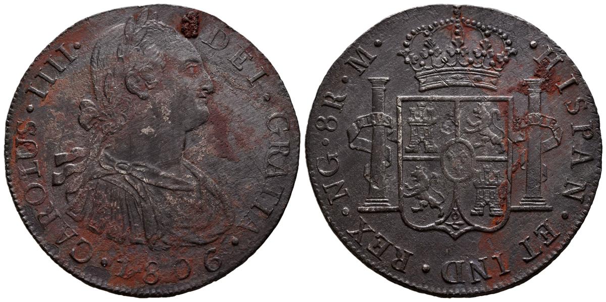 CARLOS IV (1788-1808). 8 Reales. (Ar. 26,46g/39mm). 1806. Guatemala M. (Cal-2019-901). MBC. Oxidaciones. Pátina rojiza.