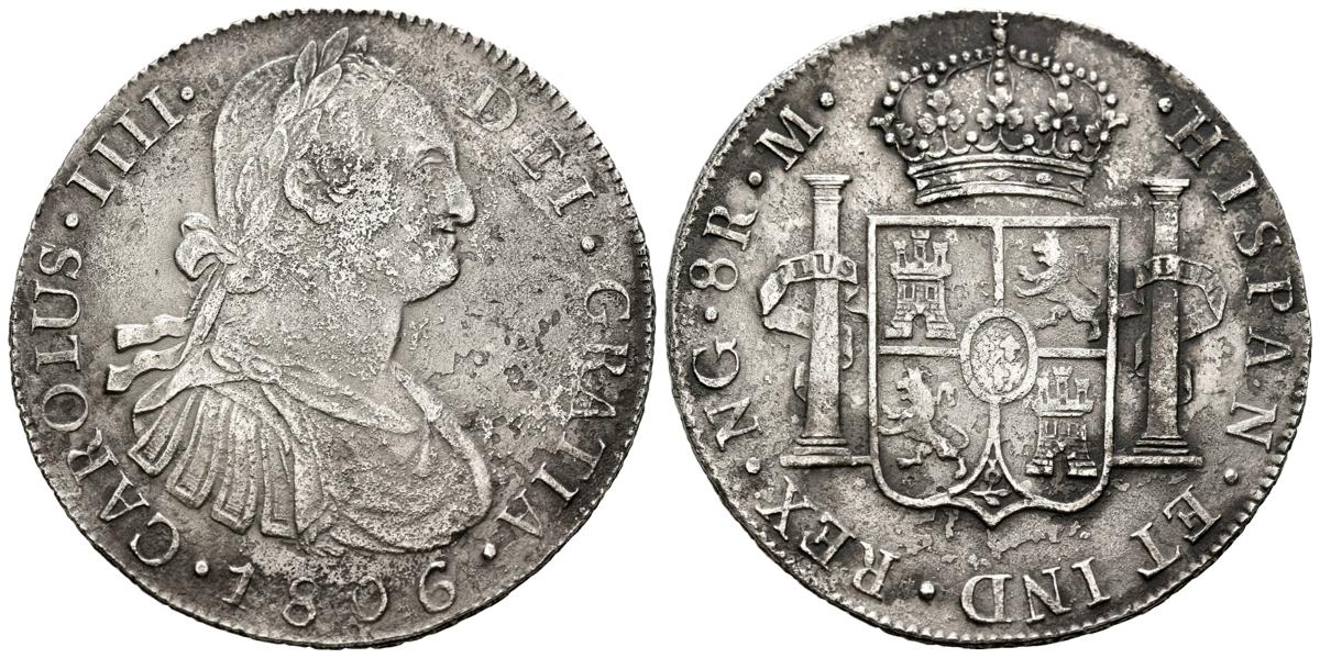 CARLOS IV (1788-1808). 8 Reales. (Ar. 26,35g/39mm). 1806. Guatemala M. (Cal-2019-901). MBC. Oxidaciones limpiadas.
