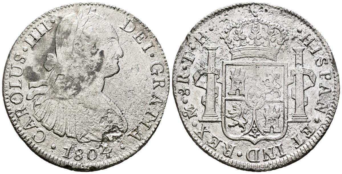 CARLOS IV (1788-1808). 8 Reales. (Ar. 24,53g/39mm). 1804. México TH. (Cal-2019-980). MBC-. Oxidaciones limpiadas.