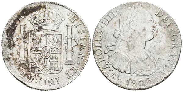 CARLOS IV (1788-1808). 8 Reales. (Ar. 25,28g/39mm). 1806. México TH. (Cal-2019-984). MBC-. Oxidaciones limpiadas.