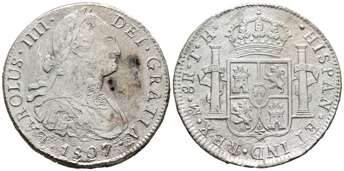 CARLOS IV (1788-1808). 8 Reales. (Ar. 25,58g/39mm). 1807. México TH. (Cal-2019-984). MBC. Oxidaciones limpiadas.
