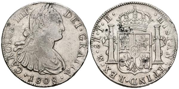 CARLOS IV (1788-1808). 8 Reales. (Ar. 26,87g/39mm). 1808. Mexico TH. (Cal-2019-988). MBC.