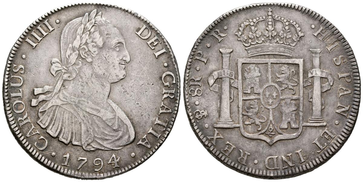 CARLOS IV (1788-1808). 8 Reales. (Ar. 26,87g/40mm). 1794. Potosí PR. (Cal-2019-994). MBC. Tono irisado.