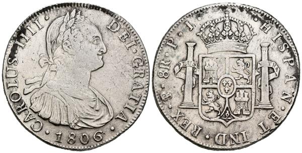 CARLOS IV (1788-1808). 8 Reales. (Ar. 26,83g/39mm). 1806. Potosí PP. (Cal-2019-1012). MBC. Limpiada.