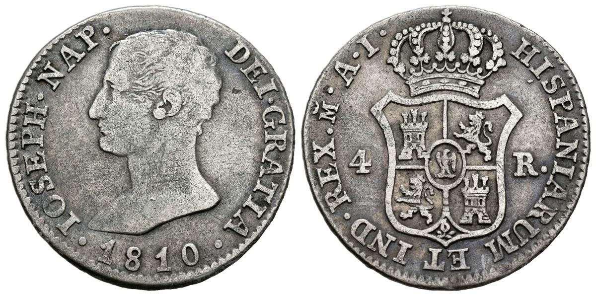 JOSÉ NAPOLEÓN (1808-1813). 4 Reales. (Ar. 5,84g/26mm). 1810. Madrid AI. (Cal-2019-14). MBC. Bonita pátina.