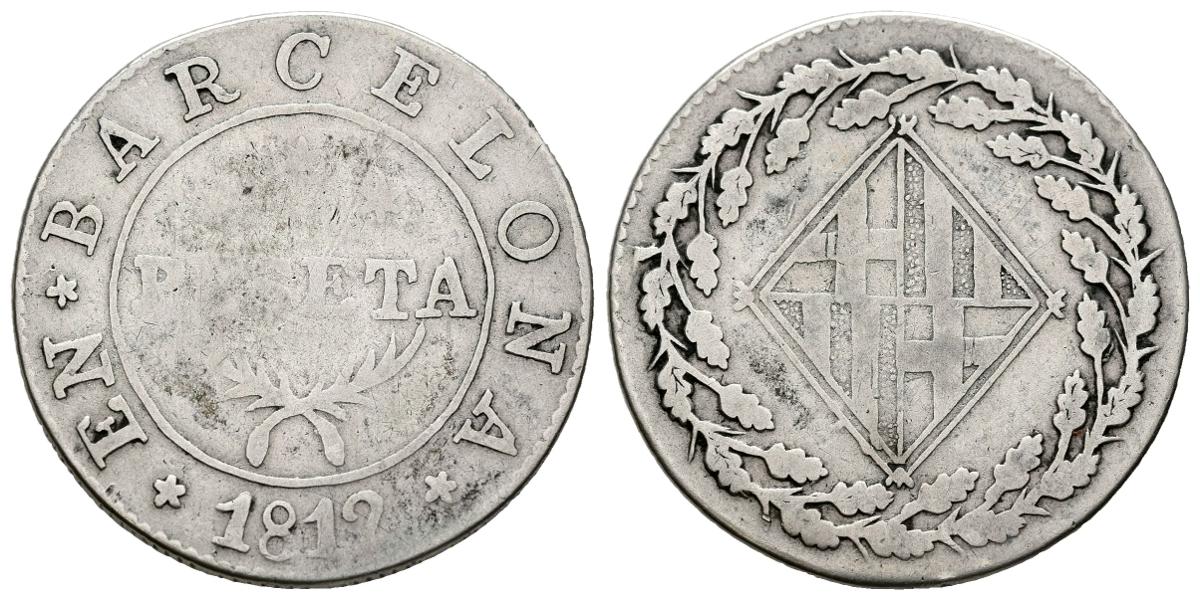 CATALUÑA NAPOLEÓNICA (1808-1814). 1 Peseta. (Ar. 5,03g/26mm). 1812. Barcelona. (Cal-2019-36). BC/BC+. Escasa.