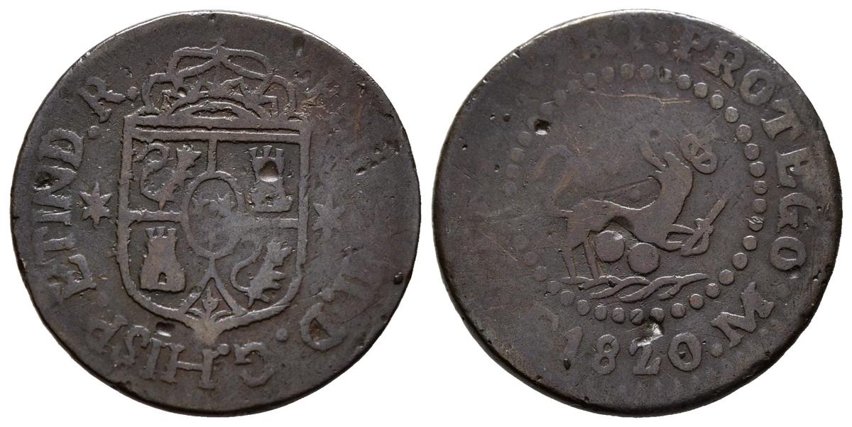 FERNANDO VII (1808-1833). 1/4 Cuarto. (Ae. 3,53g/21mm). 1820. Manila. (Cal-2019-86). BC+. Escasa.