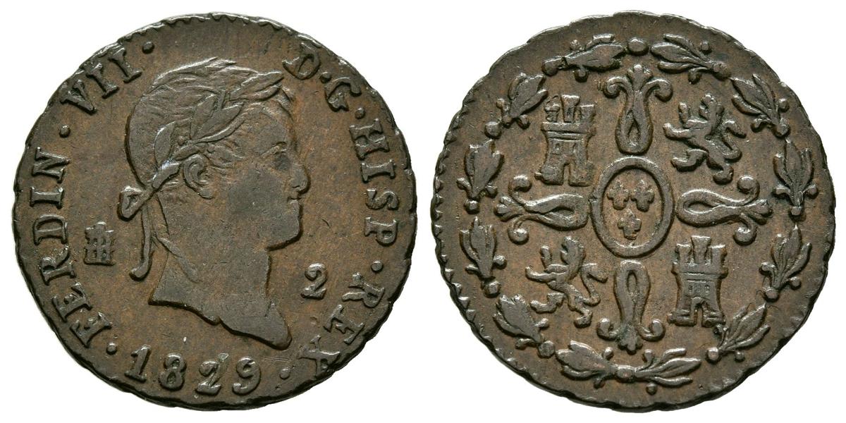 FERNANDO VII (1808-1833). 2 Maravedís. (Ae. 2,35g/19mm). 1829. Segovia. (Cal-2019-151). MBC+.