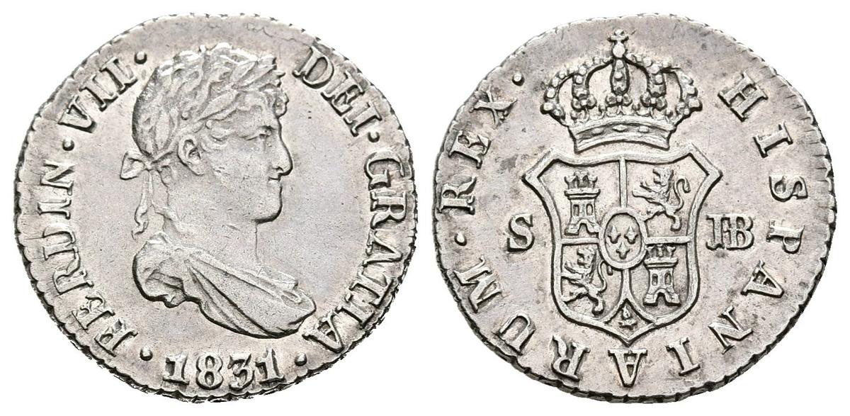 FERNANDO VII (1808-1833). 1/2 Real. (Ar. 1,46g/15mm). 1831. Sevilla JB. (Cal-2019-465). EBC+. Restos de brillo original. Ex Colección Manuela Etcheverría.