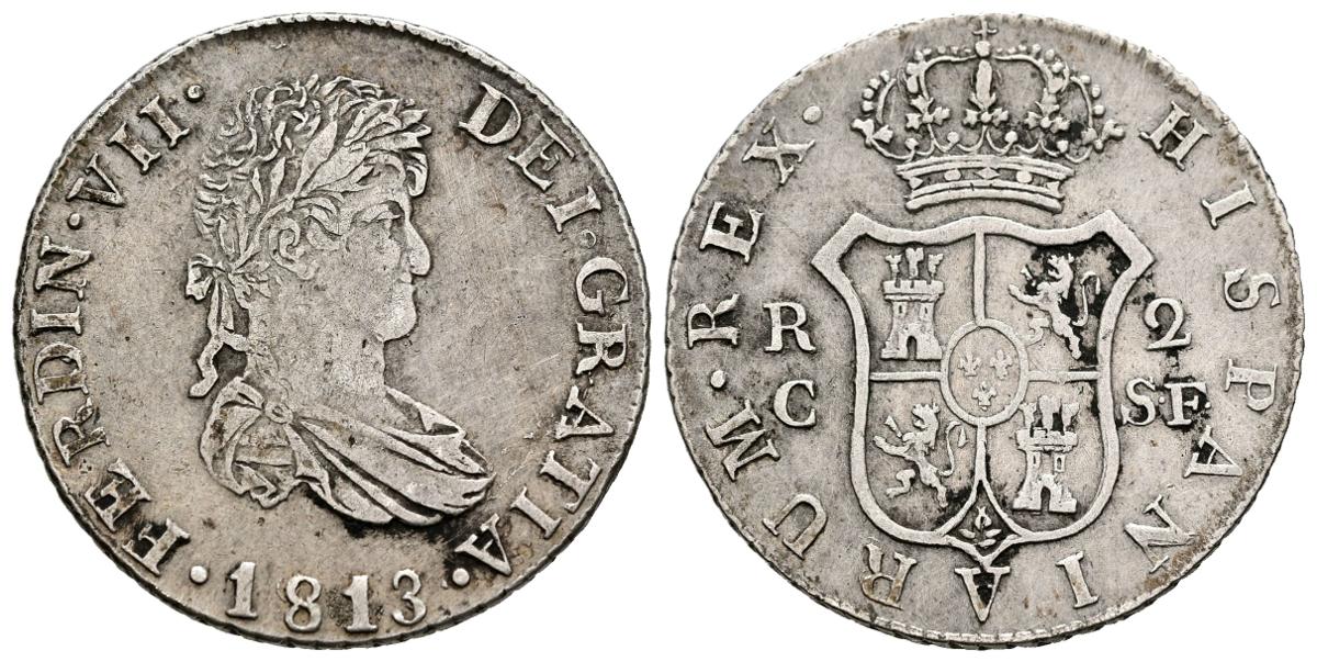 FERNANDO VII (1808-1833). 2 Reales. (Ar. 5,67g/26mm). 1813. Cataluña SF. (Cal-2019-767). MBC+/MBC.