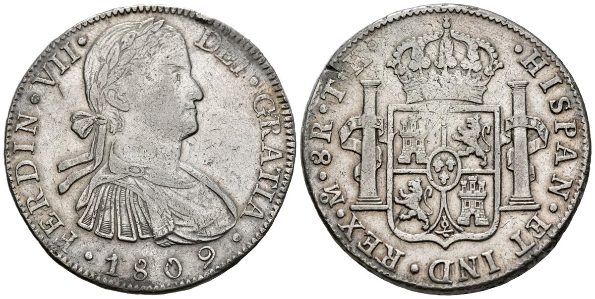 FERNANDO VII (1808-1833). 8 Reales. (Ar. 26,78g/40mm). 1809. México TH. (Cal-2019-1308). MBC-.