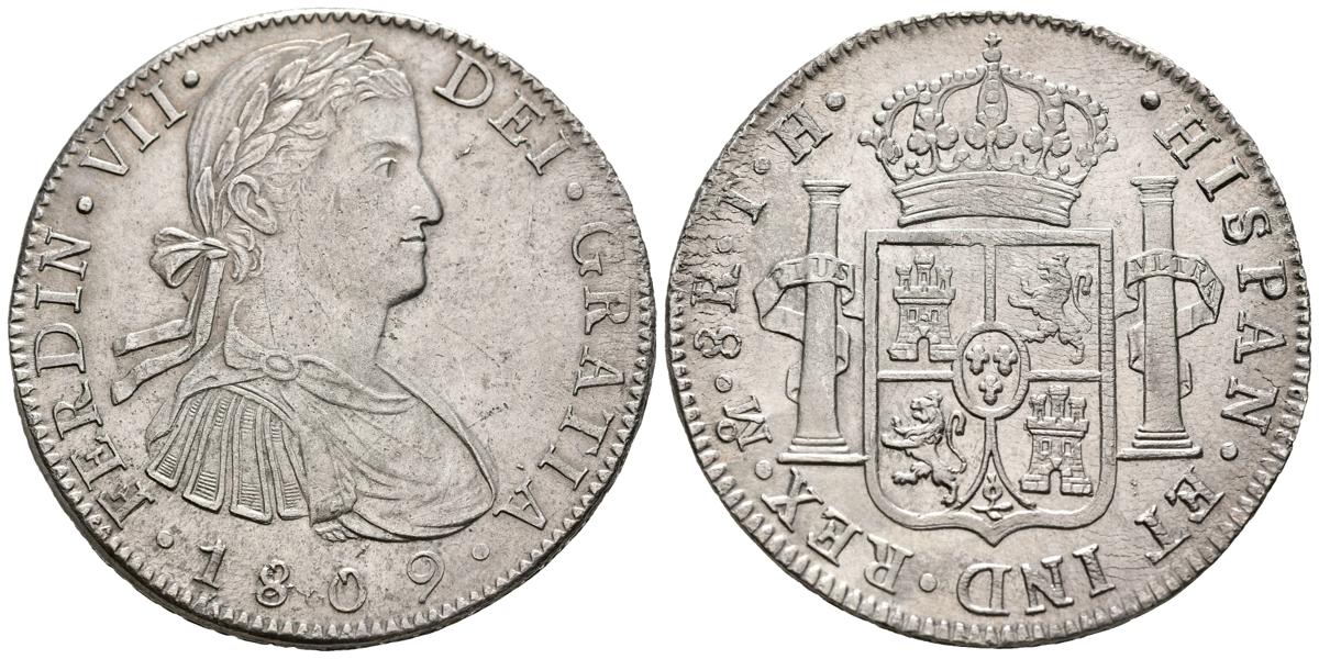 FERNANDO VII (1808-1833). 8 Reales. (Ar. 26,91g/40mm). 1809. México TH. Busto imaginario. (Cal-2019-1308). EBC. Restos de brillo original.