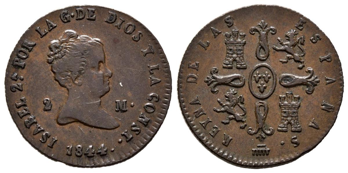 ISABEL II (1833-1868). 2 Maravedís. (Ae. 2.34g / 19mm). 1844. Segovia. (Cal-2019-56). MBC+.