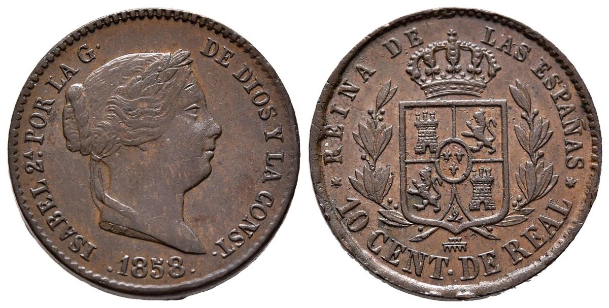 ISABEL II (1833-1868). 10 Céntimos de Real. (Ae. 3,70g/20mm). 1858. Segovia. (Cal-2019-174). MBC+.