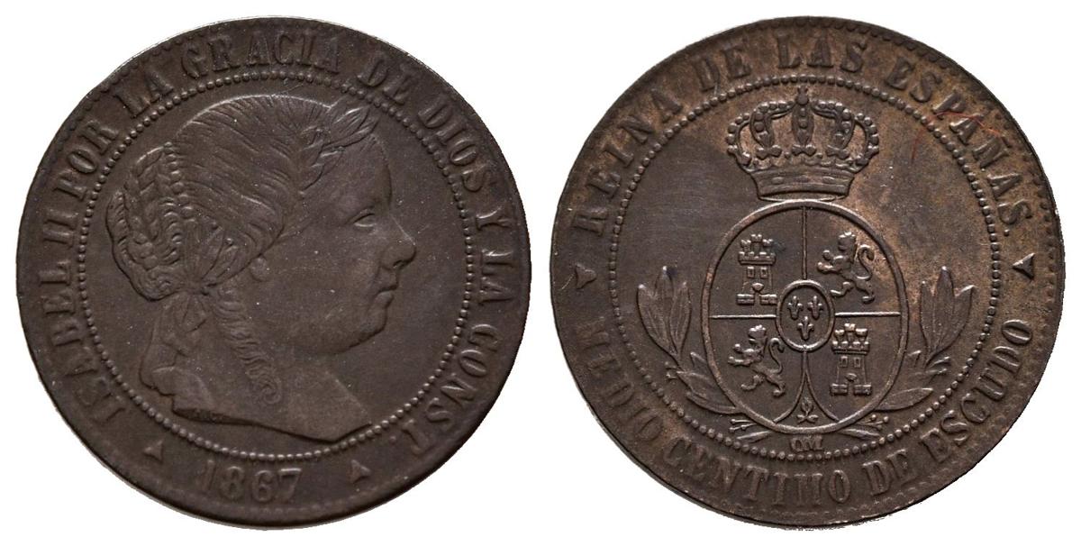 ISABEL II (1833-1868). 1/2 Céntimos de Escudo. (Ae. 1,29g/16mm). 1867. Segovia OM. (Cal-2019-209). MBC.