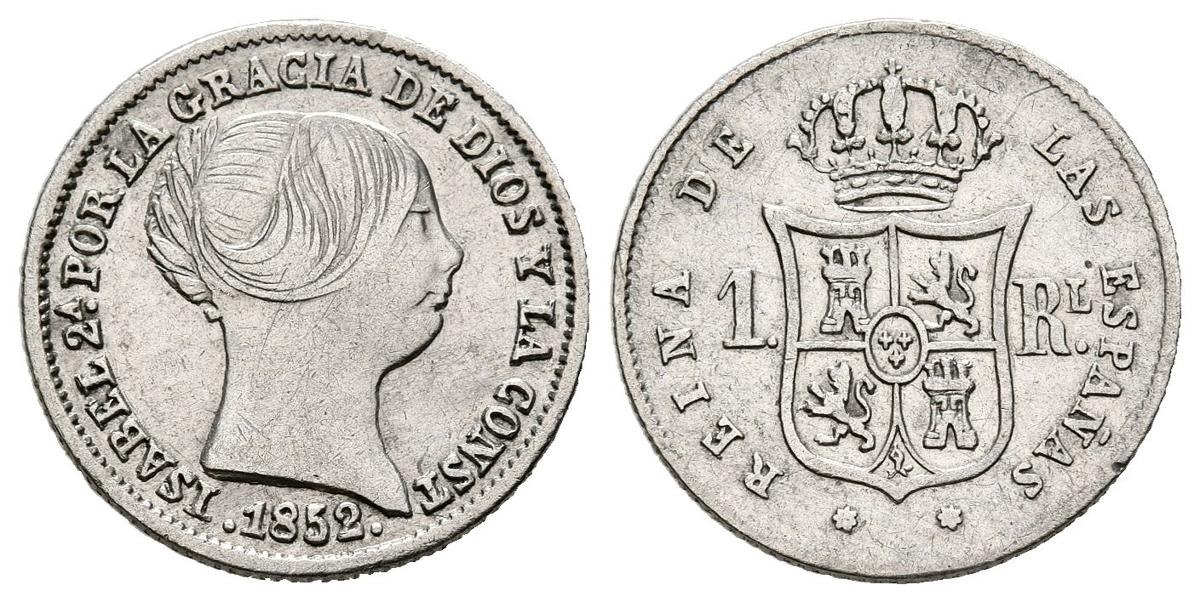 ISABEL II (1833-1868). 1 Real. (Ar. 1,27g/15mm). 1852. Sevilla. (Cal-2019-321). MBC+. Impronta de la leyenda del anverso en el reverso. Interesante pieza.