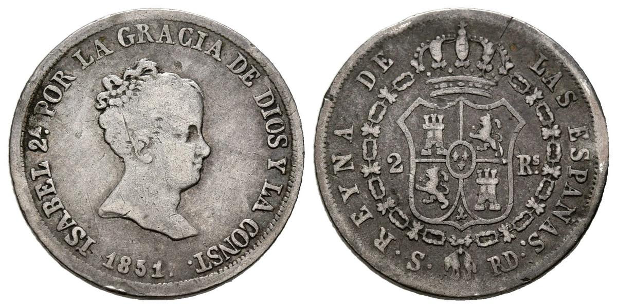 ISABEL II (1833-1868). 2 Reales. (Ar. 2,53g/18mm). 1851. Sevilla RD. (Cal-2019-388). MBC-.