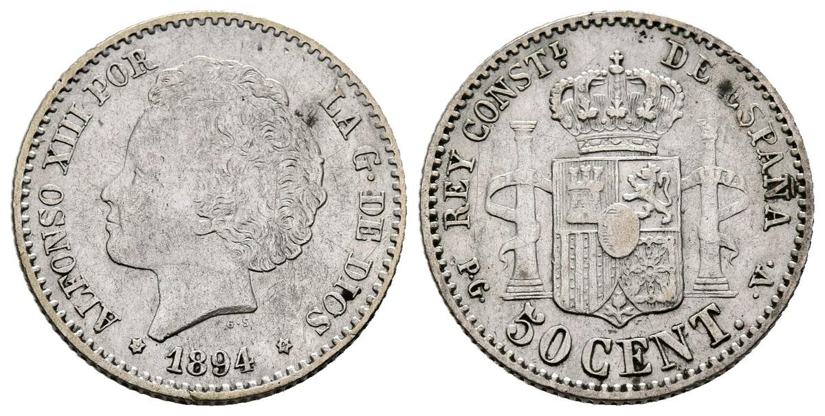 ALFONSO XIII (1885-1931). 50 Céntimos (Ar. 2,51g/18mm). 1894 *9-4. Madrid PGV. (Cal-2019-43). EBC-/MBC.